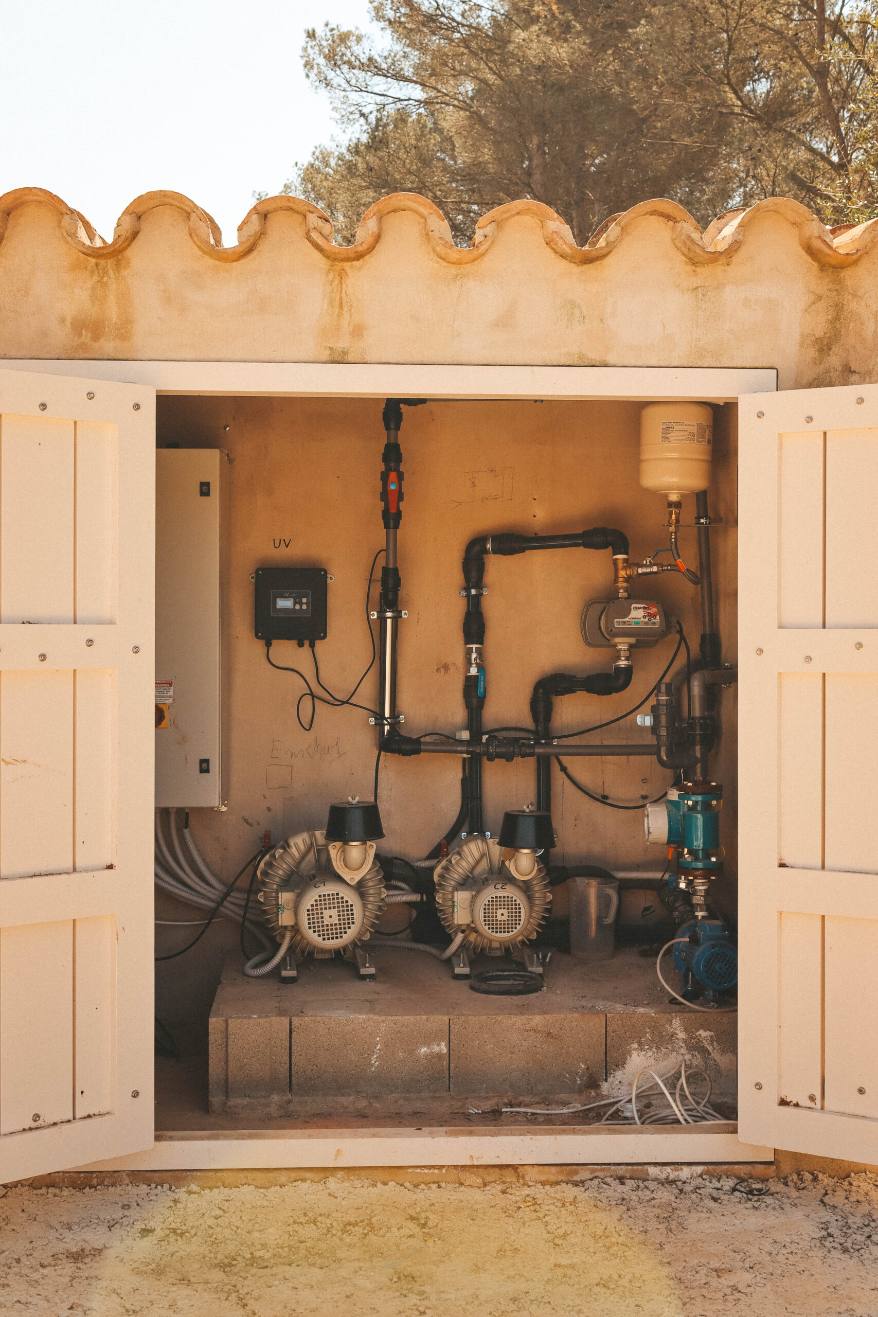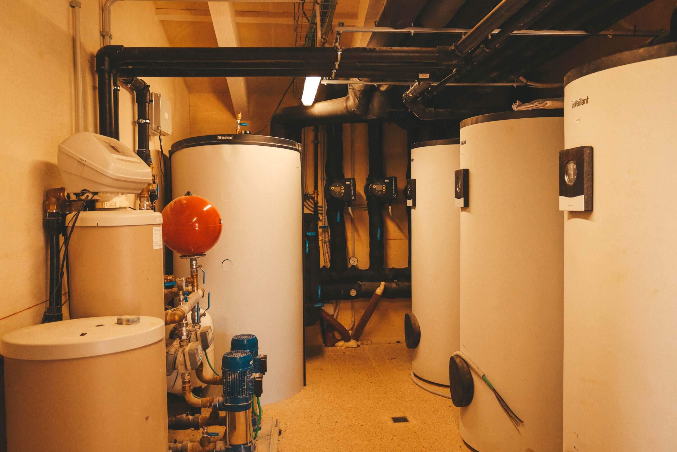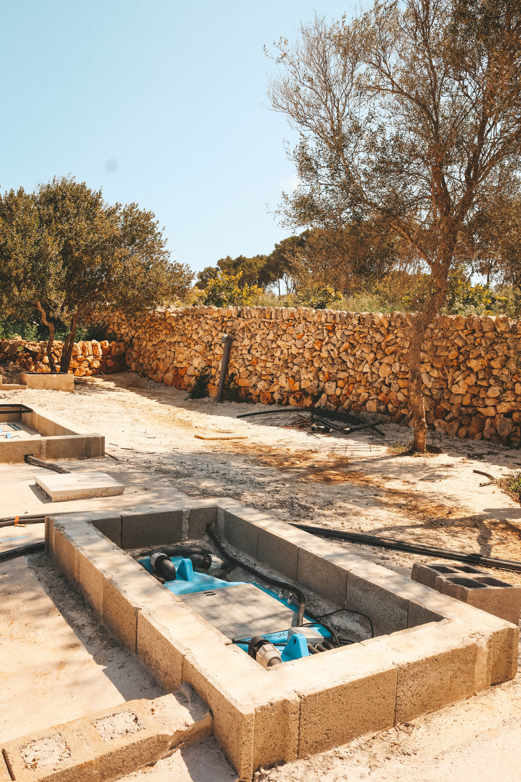 El alcance de los trabajos comprende la instalación fotovoltaica con baterías de acumulación, la implementación de sistemas de aerotermia y geotermia que alimentan un techo radiante en frío y calor, la ejecución integral de los baños, la construcción completa de la sala de máquinas y un sistema de recuperación y aprovechamiento de aguas pluviales.