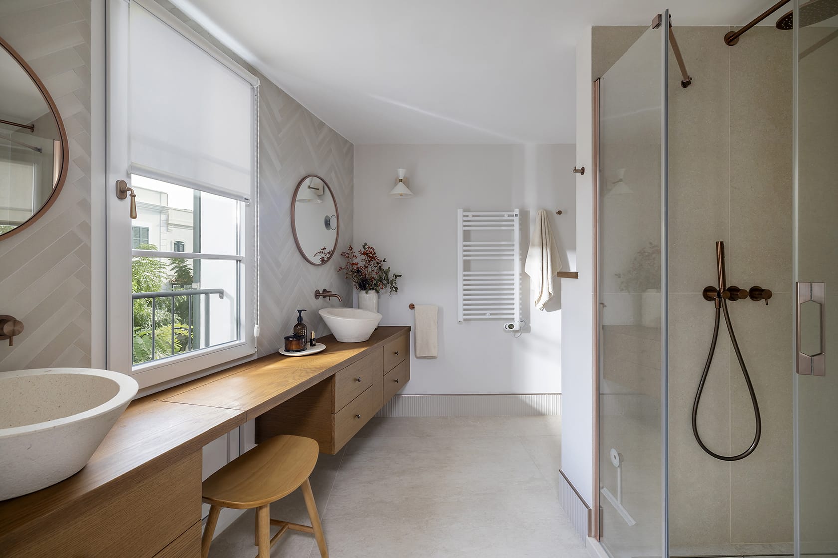 En BarberColl transformamos esta vivienda con una instalación completa de fontanería, baños con diseño exclusivo y sistema de agua caliente sanitaria mediante bomba de calor, combinando confort, estilo y eficiencia.